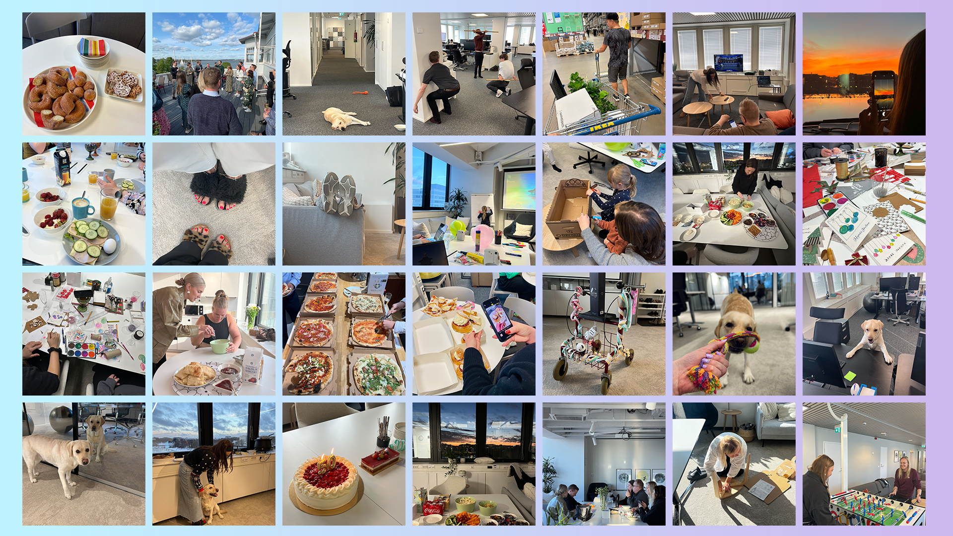 Joka maanantai tuloslaiset starttaavat viikon yhteisen aamiaisen merkeissä toimistolla. Vietämme tiiviisti aikaa yhdessä avokonttorissa, jossa keskustelut ja ideat virtaavat vapaasti. Meillä huumori kukkii arjessa ja uskomme, että hyvä nauru kuuluu yhtä lailla työpäivään kuin kahvitauotkin. Olemme käyneet yhdessä myös keilaamassa, juoksemassa, karkaamassa pakohuoneesta – ja toki myös ihan vain viettämässä iltaa hyvän ruuan ja juoman merkeissä.